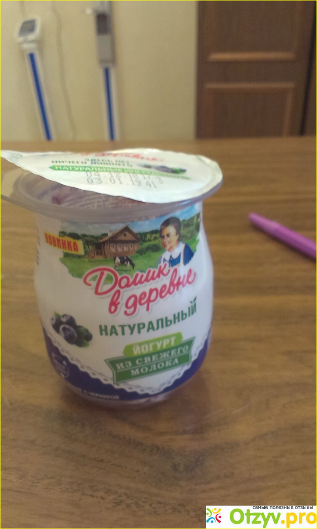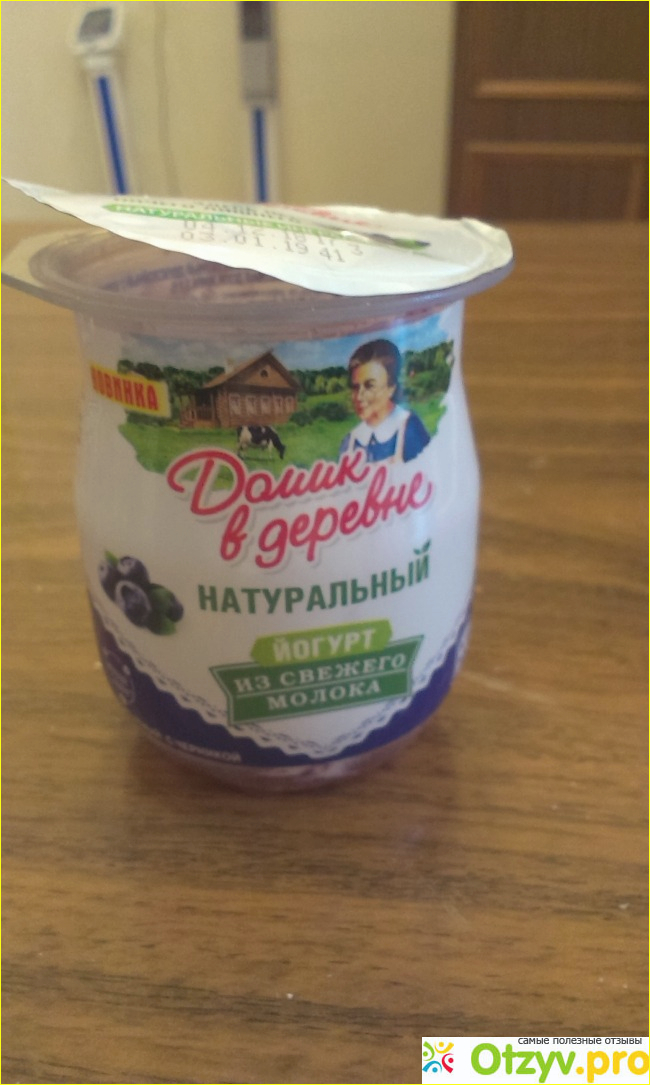 Новый йогурт этого года термостатный с различными вкусами " Домик в деревне". Я вам расскажу об йогурте с черничным наполнителем.