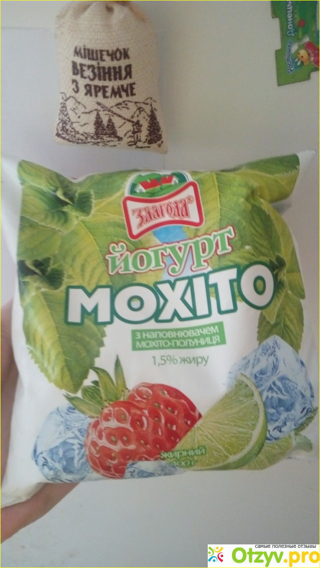 Летом я частенько покупаю нежирные йогурты с минимумом каллорий, одним из моих фаворитов является йогурт от торговой марки Злагода с наполнителем "Мохито-клубника".