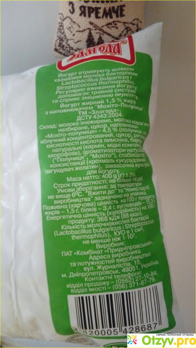 Производитель пишет что йогурт "жирный", но для меня он вовсе не жирный, ведь процент жирности всего 1,5%.