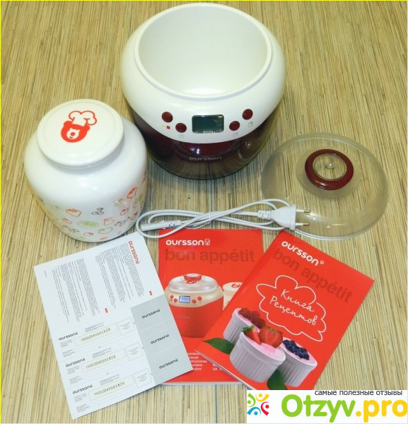 Итак, что я хочу сказать о комплектации йогуртницы-ферментатора Oursson FE2103DВ, меня приятно удивило наличие книги рецептов и встроенной функции приготовления йогурта по этим рецептам. То есть, чтобы приготовить вкусны и полезный йогурт без красителей и консервантов достаточно просто выбрать рецепт его приготовления, нажав всего одну кнопку. И ту хочется-таки воскликнуть: "Увау! До чего техника дошла!"