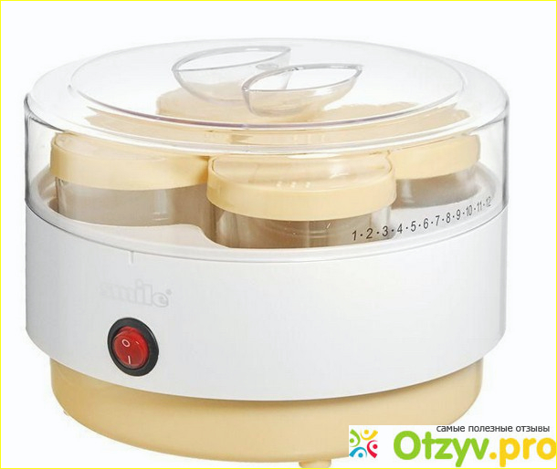 Простота йогуртницы заключается в том, что у нее всего 1 кнопка - она же включает прибор и выключает. Больше никаких кнопок нет. Но тут есть и недостаток йогуртницы: не знаешь, когда йогурт будет готов. Поэтому мне лично приходится заводить будильник на своем телефоне после установки йогурта. Йогурт в данной йогуртнице готовится 8 часов. Можно готовить чуть больше или чуть меньше. Разница в час-полчаса непринципиальна, я лично по этому поводу не зацикливаюсь. Я использую магазинное молоко. Подходит любое: стерелизированное, пастеризованное, ультрапастеризованное. Пробовала готовить из домашнего молока - не очень понравилось, жирно слишком. По вкусу йогурт получается как сметана, можно есть с вареньем или джемом, так вкуснее, но и без ничего есть йогурт, приготовленный в йогуртнице Smile, также вкусно!