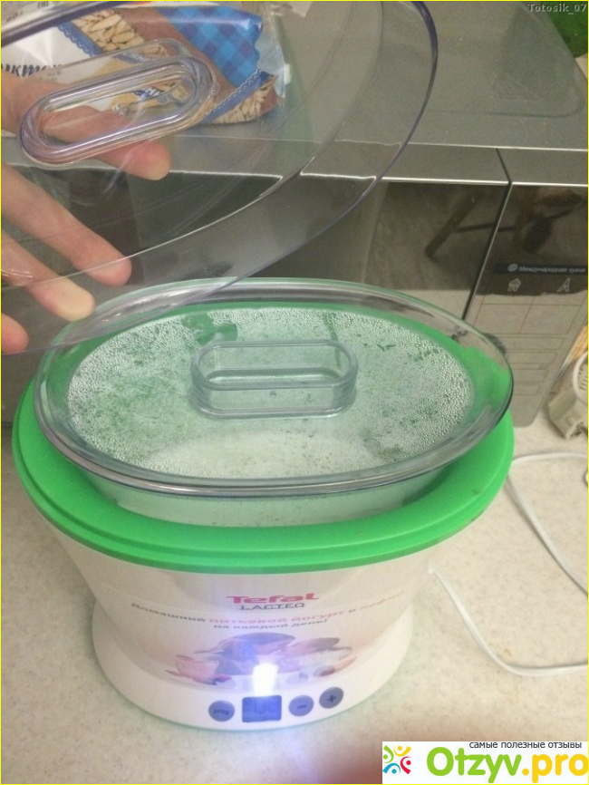 Йогуртница Tefal Lacteo YG260132 нам очень нравится. Мы теперь регулярно покупаем молоко и закваску и готовим и кефир, и ряженку, и простоквашу, и йогурт, и сметану. Мы полностью уверены, что кушаем очень качественные молочные продукты. Я, для поддержания фигуры стараюсь кушать не сладкие продукты, а остальные члены семьи, особенно младшие смешивают готовый кефир или йогурт с вареньем, сиропами или свежими фруктами с сахарной пудрой. Продукты получаются очень вкусные и не нужно сидеть и следить, когда продукт будет готов, потому что по окончании приготовления йогуртница отключится автоматически. Мыть йогуртницу очень легко, гораздо проще и быстрее, чем мыть несколько отдельных баночек. Пользоваться ей тоже очень удобно. Готовый продукт может храниться в контейнере с крышкой в дверце холодильника и его легко и удобно разливать по чашечкам или другим посудинам через носик.