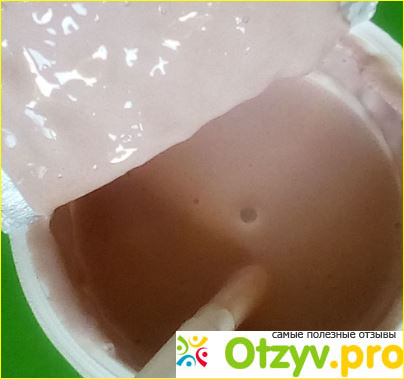 Содержимое густое, приятного розового цвета. Десерт вкусный, правда! И нотки шоколада есть, и нотки клубники. И нотки растаявшего мороженого.