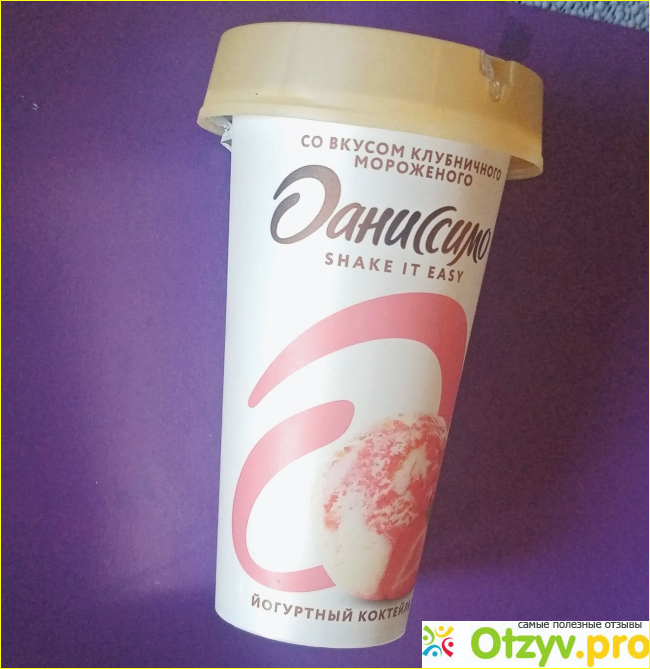 Я уже пробовала некоторые коктейли от "Danissimo " в высоких узких стаканчиках с надписью "Shake It Easy ", что означает"слегка встряхни". Они мне понравились. Теперь увидела новый, вот такой, в белом стаканчике с розовым рисунком.