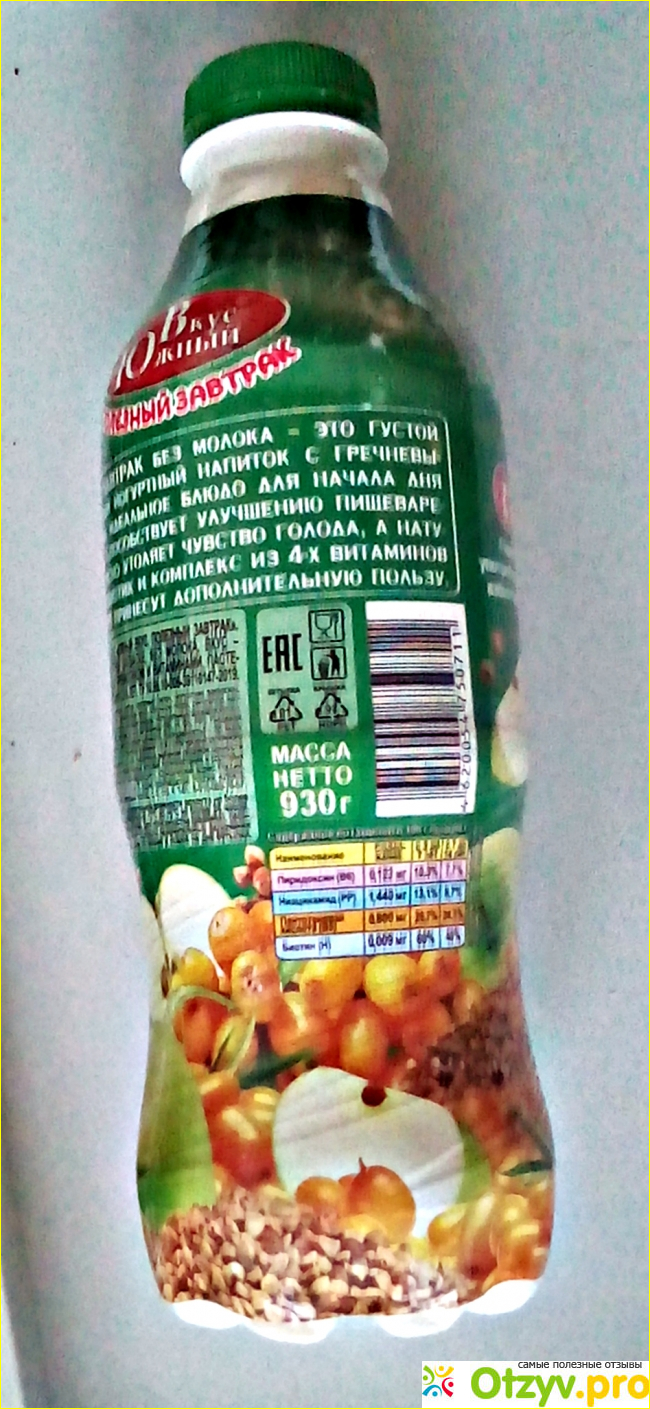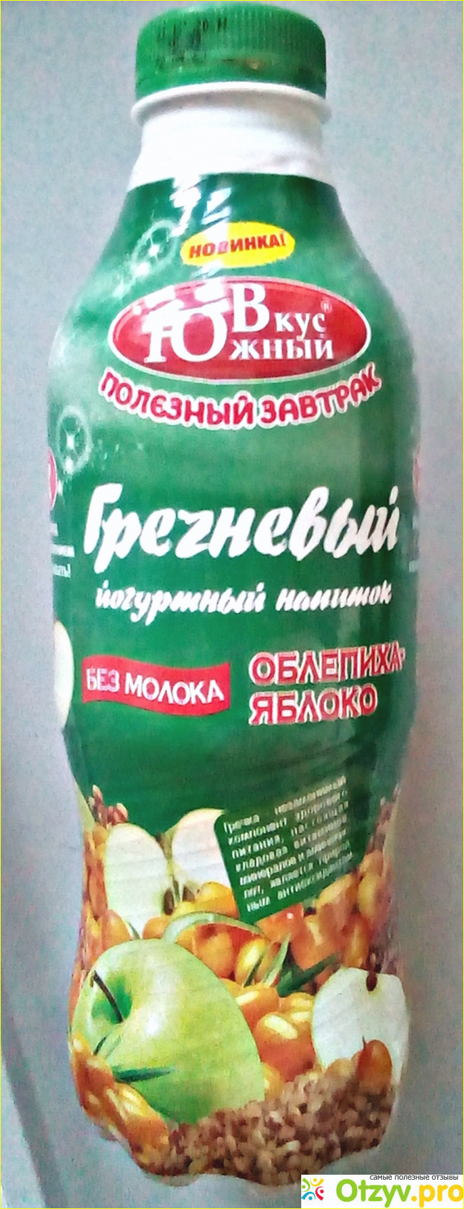 Молока в составе нет. Но зато есть гречка, яблоко и облепиха. Красивая упаковка с изображением фруктов и гречки. Я никогда раньше не пробовала йогуртов или йогуртных напитков с гречкой. Было интересно попробовать. Хотя существует для меня неприятный момент: я гречку с детства ненавижу. Видимо, заставляли есть и возникло отторжение.