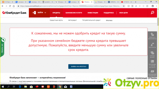 В те места, где цвет отличается, вписываем свои данные (город, в котором мечтаете приобрести жилье, стоимость этого имущества, свой пол, сколько хотите взять в долг, за какой срок планируете рассчитаться, указываете свой пол и семейный доход). После нажатия вкладки "Рассчитать", получите предварительное решение. К примеру, если я женщина 35 лет, присмотревшая квартиру в Московской области за 3 млн рублей и желающая взять ипотеку на 2 млн, при доходе в 40 тысяч, то получу отказ. Вот что вышло: