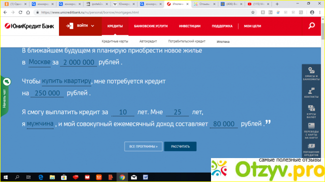 Покажу на примере. Итак, на сайте есть довольно интересный калькулятор расчета ипотеки. Выглядит он следующим образом: