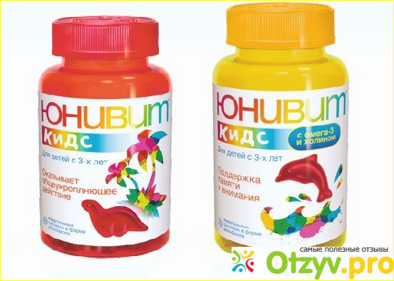 Что касаемо Юнивит кидс, то это такие жевательные мармеладки, которые продаются в двух разных вариантах. Первый вариант идет для поддержания иммунитета, а второй вариант идет с омега 3 и холином предназначен для поддержания умственного развития ребенка.