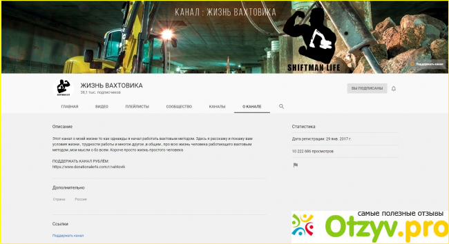 Канал создан в 2017 году и сейчас на нём больше 38 тысяч подписчиков. Канал пользуется спросом, так как на нём много интересной информации, не только о работе вахтой, но к примеру вложении денег. Так же о личной жизни людей, об изменах и тому подобном. Здесь Дмитрий на многое открывает глаза, что даже удивляешься, как можно так работать и существовать. Вахтовики работают по несколько месяцев в тяжёлых условиях, бывают случаи обмана с выплатами и даже убийств. Вообщем всякое бывает. И о зарплате конечно речь идёт, сколько зарабатывают люди и как распоряжаются средствами. Всем кто интересуется темой работы вахтовым методом, канал будет полезен. Рекомендую.