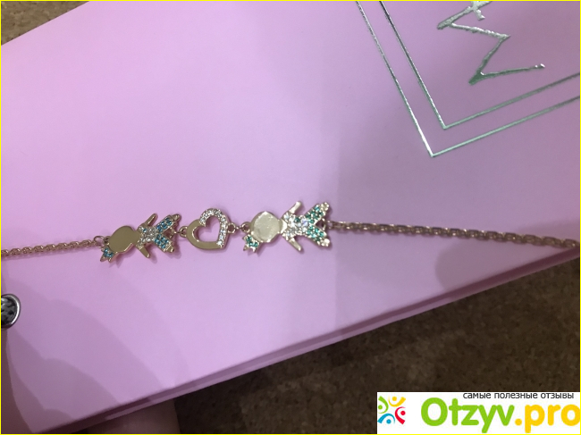 Браслет я купил жене на рождение наших детей. В ювелирных украшениях не особо понимаю, поэтому большой плюс консультантам на телефоне, помогли в режиме онлайн собрать браслет из белого золота. Так как у нас двойняшки, то различия в фигурках решил не делать.