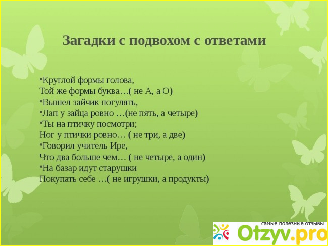 Загадки или вопросы с подвохом — это загадки, призванные размять ваши мозги. От простых загадок их отличает наличие обычного вопроса, на который, кажется, можно быстро и легко ответить, и нестандартный ответ. На первый взгляд ответ может показаться слегка странным и даже неправильным, но если ещё раз внимательно прочитать загадку и хорошенько подумать над ответом, то он окажется вполне логичным.