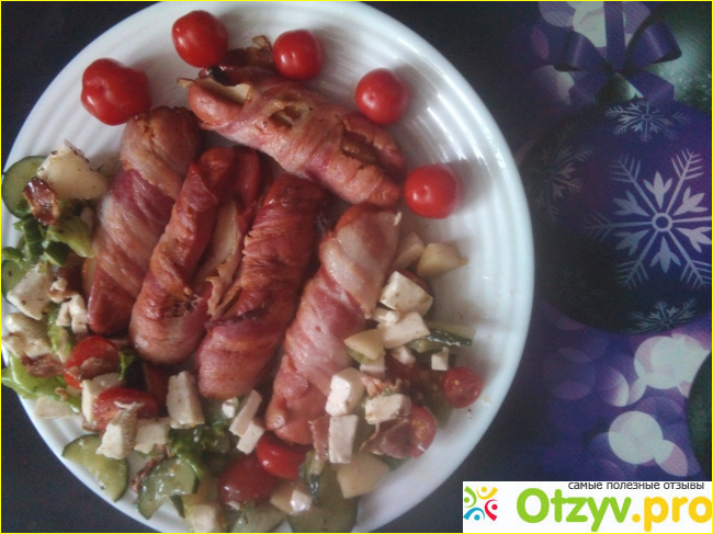 Понадобится всего 3 ингредиента: хорошие сосиски, сырокопчёный бекон, груша конференция.