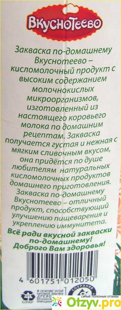 Мне полюбилась закваска от бренда «Вкуснотеево» ОАО «Молвест» по-домашнему, о которой и хочу рассказать в данном отзыве.