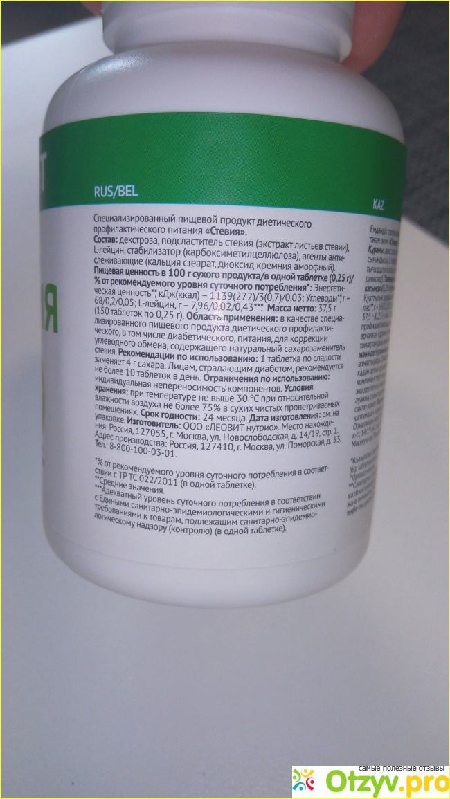 Я купила Стевию от фирмы Леовит в виде таблеток. В упаковке 150 таблеток. 1 таблетка Стевии заменяет 4г сахара, это равно 1 кусочку сахара.