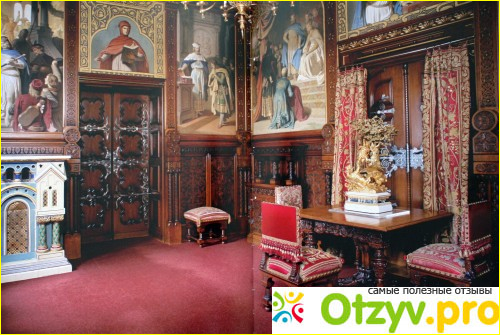Архитектор выбрал неороманский стиль, отличающийся большим количеством круглых арок, окон, башен и колонн. Для украшения замка применялся мрамор, а внутренние залы отделывались с преувеличенной роскошью. На полу выкладывалась мозаика, колонны облицовывались искусственным камнем, арки расписывались резьбой. В центре расположился зал певцов с полотнами на тему произведений Вагнера (немецкий композитор), однако по назначению он долго не использовался. Впоследствии уже перед самой второй мировой войной здесь проходили концерты и под сводами звучала музыка.