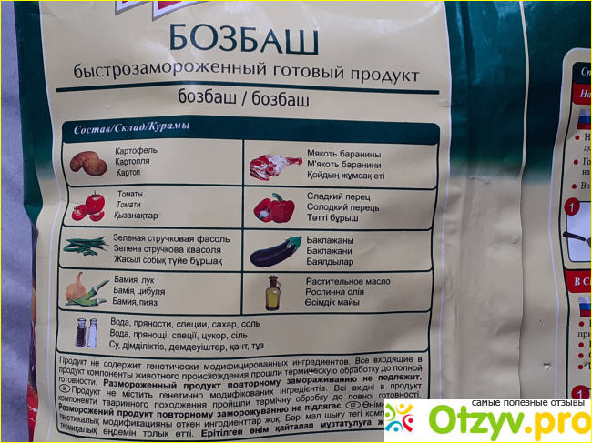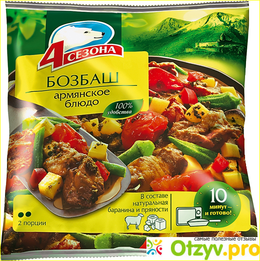 Мне нравится 4 сезона за качество, смесь действительно достойная, яркая, с особенным вкусом. К тому же простота приготовления, быстрота, позволяют использовать замороженный пакет даже детям и мужьям. То есть мой супруг теперь может в мое отсутствие легко приготовить бозбаш, ведь смесь достаточно высыпать на сковородку и обжарить.