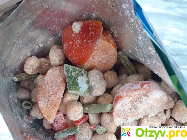 В составе смеси мясо, овощи и разные приправы.