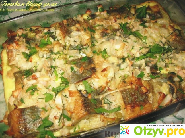 Правда забыла название. Оно мне очень понравилось и я взяла рецепт. И вот я решила приготовить для своих детей эту вкуснятину. Дети были в восторге и теперь очень часто просят приготовить рыбу в духовке. Хочу поделиться рецептом. Может кто-то тоже не любит рыбу, а это понравиться. Ингредиенты: соленая селедка, молоко, картофель, лук, приправа для рыбы, чеснок, перец болгарский, перец черный, морковь, сыр, соль, майонез , подсолнечное масло, зелень. Солёную селёдку замачиваем в молоке на полтора-два часа. Потом чистим, вынимает кости и хребет. Картофель отвариваем в мундире до полуготовности. Затем очищаем, нарезаем кружочками. Репчатый лук нарезаем полукольцами и обжариваем до золотистой корочки. Затем чистим сырую морковь и натираем на крупной тёрке, болгарский перец нарезаем полосками. Морковь и перец слегка обжариваем. Нагреваем противень, наливаем немного подсолнечного масла, на дно вылаживаем картофель , немного солим и сверху ложим небольшие кусочки рыбы. Затем посыпаем жареным луком, морковью с перцем, приправой, чесноком, черным перцем. Сверху намазываем майонезом, посыпаем натертым на крупной тёрке сыром и зеленью. Ставим в духовку на 180° примерно на 30-35минут. Блюдо получается очень вкусное, особенно для тех, кто не очень любит рыбу. Попробуйте. Пальчики оближите.