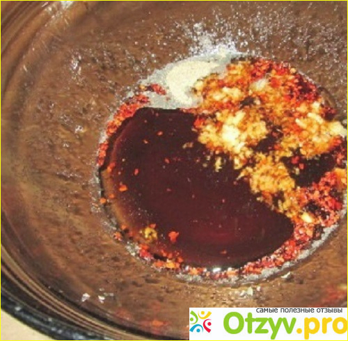После этого, кладем их на плоскую тарелку шкуркой вниз на 10 минут. Пока наша рыбка маринуется в лимонном соке – мы готовим маринад. В миске смешиваем мед и соевый соус. Важно: мешаем до тех пор пока мед полностью не раствориться. Должна получиться однородная масса, в которую добавляем черный и красный перец и измельченный чеснок.