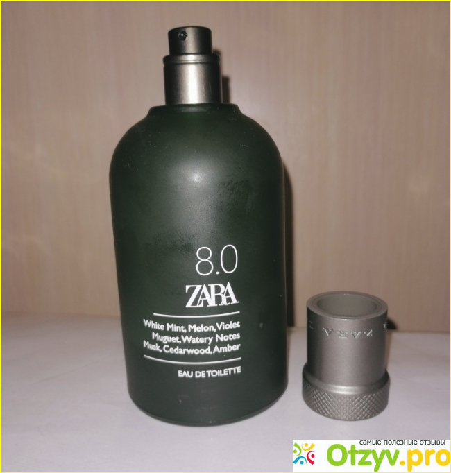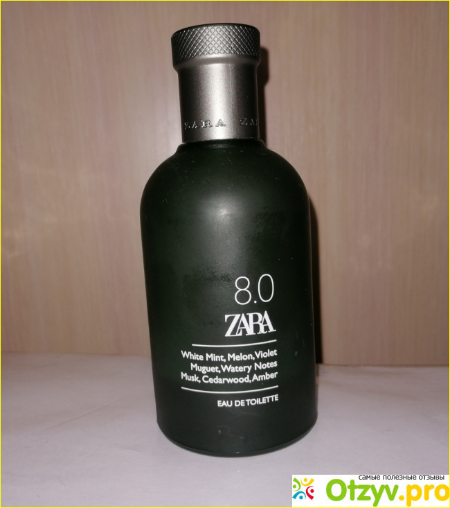 Однажды зайдя в магазин ЗАРА, я обнаружил очень ароматный мужской парфюм! Богатый, насыщенный вкус парфюма ZARA 8.0 сразу же мне понравился. На запах очень напоминает нотки дыни смешанные с фиалкой и отдушкой мяты, кедра и мускуса. Я подумал: то что надо! И купил его! Моя любимая женщина, каждый день обнюхивает меня с ног до головы! Вы не представляете какой аромат!!!