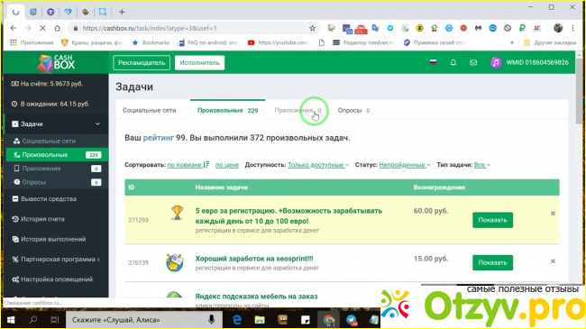 Сайт называется cashbox.ru на его следы я вышла случайно, просто занималась поиском новой работы и возможностью в свободные 5-10 минут в день заглянуть на сайт и выполнить пару действий.
