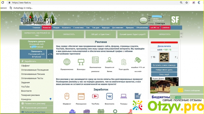 Но вот пошли обновления, с которыми не сразу разобралась. Письма были не доступны, но от администратора были подсказки как с этим справиться. Сёрфинг стал вообще можно сказать бесплатный 0.012 руб, правда время на это 5 секунд, пару штук были по 0,022 руб, но я продолжала кликать. Мне нравилось, что можно в это время не находиться на этой странице, а заниматься другими сайтами, а только время от времени заходить на страницу и нажимать кнопку для зачисления копеек. Чтобы не потерять этот сайт из вида заходила пару раз в неделю и собирала копейки, просматривала самые оплачиваемые в сёрфинге это две - три страницы.
