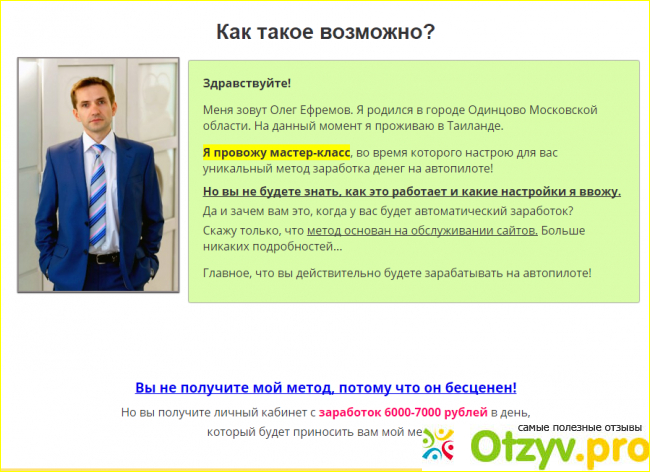 Также хочу представить вам сайт Олега Ефремова, данный молодой человек рекламирует сайт-рулетку, где он якобы зарабатывает. Но покопавшись в интернете, я поняла, что это банальный развод. В интернете многие обманутые люди пишут, что это банальный развод.
