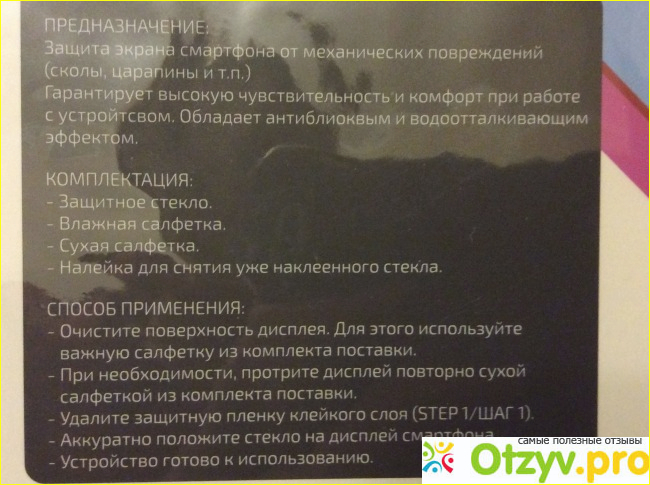 В комплект поставки входит все необходимое для наклейки стекла – влажная и сухая салфеточки, стикеры для сбора пылинок с экрана и для снятия наклеенного стекла.