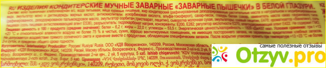 Состав заварных пышечек далек от идеала, в нем полно Е-шек, рафинированных масел, консервантов. Но а в каких кондитерских изделиях теперь этого нет. Везде состав подобный. Здесь хоть присутствуют яйца куриные, а не яичный порошок.