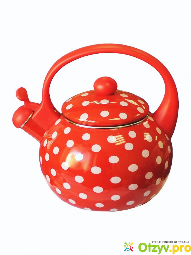 Яркий и, привлекающий к себе внимание, эмалированный чайник красного цвета, в белый горох! Прекрасный элемент декора для вашей кухни.
