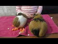 Сначала свинка была пугливой, в руки не давалась, но свистеть стала сразу, видимо проголодалась, а голод - не тетка. Я ей порезала морковку, свеколку, яблочко - на выбор. Аппетит у зверька оказался хорошим и она быстро все это схомячила.