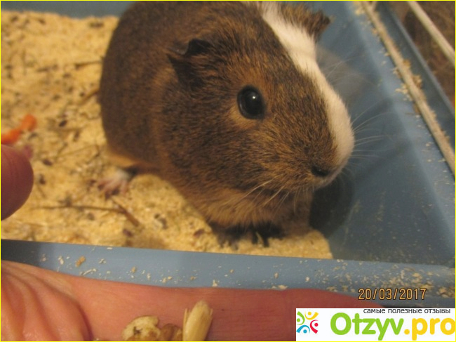 А в общем прибираемся раз в неделю. Покупаем наполнитель древесный для кошек и сено для грызунов. Кормим морковкой, капустой, сухариками из белого хлеба. Очень любит зелень.