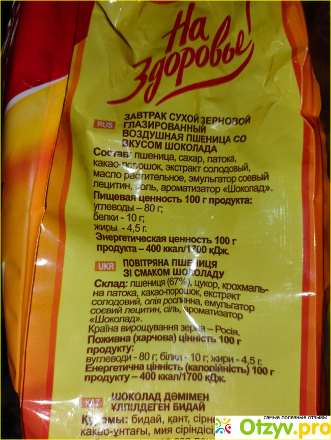 Привлекло упоминание шоколада. В пакете очень крупные зерна напоминающие кофейные. При этом они очень легкие воздушные.