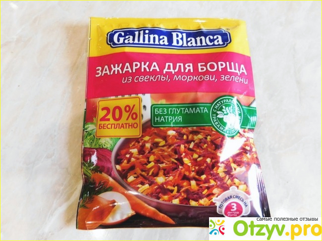 Ни так давно я обнаружила приправу, или вернее, зажарку для борща. Вот в такой красивой пачке и от очень известного производителя GALLINA BLANCA.
