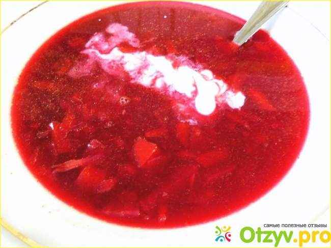 После того как приправу опустила в бульон и немного поварила, цвет супа стал не бордовый, а что-то между коричневым и красным. Думаю, что вторая пачка не исправила первоначальный результат.