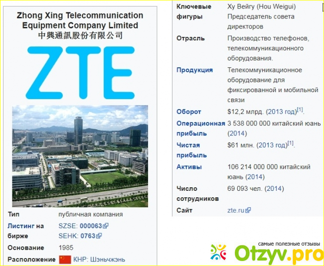 ZTE - это китайская компания, которая занимает второе место по производству сотовых телефонов в Китае. Она была основана еще в 1985-м году, а головной офис находится в Шэньчжэнь.