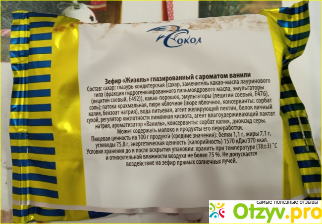 Не смотря на то, что упаковка фольгированная, прочная, у меня в сумочке зефир помялся и немного потерял свой внешний вид-глазурь потрескалась.