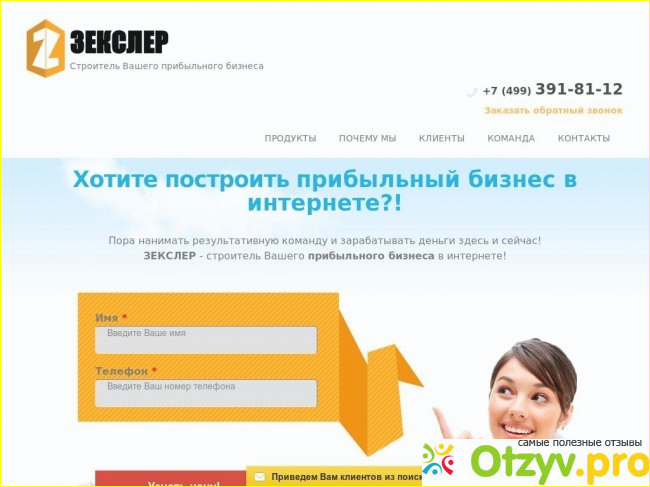 Здравствуйте, хочу написать свой отзыв о сайте, который обещает помочь построить свой интернет бизнес за приличную сумму, но на самом деле этот сайт ничего не делает. Начну с того, что компания, которая се это обещает называется "Zexler", и я хочу, чтобы вы запомнили это название для того, чтобы в случае вашей нужды в создании сайта ни в коем случае не обращались к данной компании, потому что я с легкостью ее называю лохотроном.