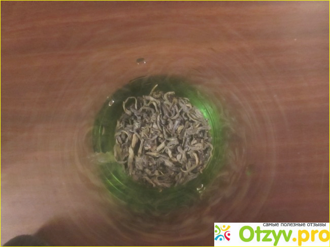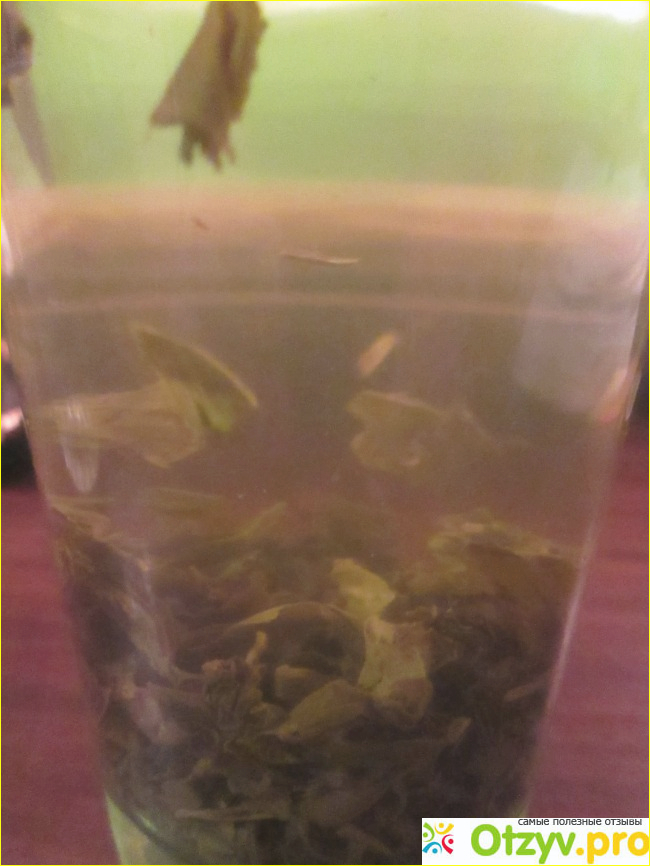 Так выглядит чай в стакане после заваривания. Размеры чаинок средние.