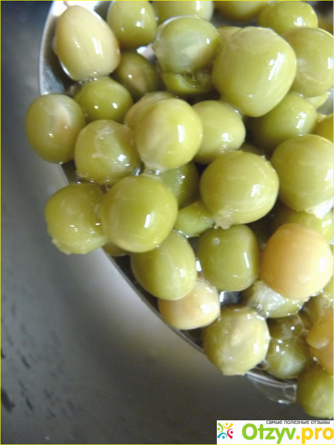 Открыв банку сначала увидела жидкость до краев банки. Слив её вижу, что горошка там на три четверти! Рассмотрим горох на вид. Он очень мелкий, но нет ни одного перемороженного или рыхлого горошка. Нет так же и мятых и коричневых горошин. Это хорошо!
