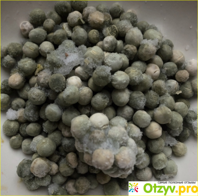 Открыла я упаковку и расстроилась донельзя. Ну и где те яркие и сочные горошины с фото на упаковке? Внутри несколько смерзшихся комков из 5-6 горошин и отдельные горошинки отвратного качества. Некоторые из них желтые с бурыми пятнами, высохшие еще до заморозки. Отвратительное качество. Какие-то горошины раскрыты, да еще и грязь с мусором в пакете. Пришлось разморозить и перебрать эту “красоту”. Выбросила я половину пачки. Остальное промыла и отправила в суп, но вкус был никаким.