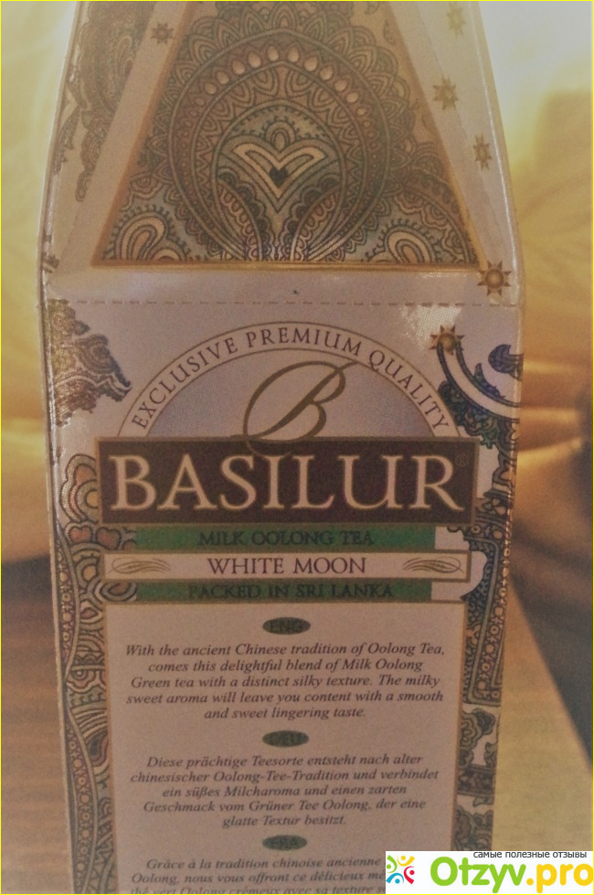 Однажды мне довелось попробовать прекрасный чай от компании Basilur из Шри-Ланки. Называется он (если перевести с английского) "Белая Луна". Этот чай имеет нежно-молочный привкус и отдаёт изрядной долей терпкости.