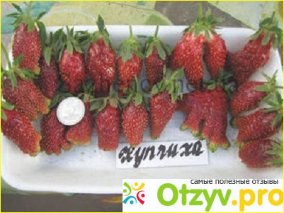 Сорт Купчиха, это не просто клубника а это гибрид клубники и соответственно земляники. Как мне удалось выяснить этот сорт получили в результате того что скрестили сорт земляники и сорт клубники. Сорта достаточно крупные , особенно сорт земляники, так как она домашняя, садовая. Сорт Купчиха это очень крупный сорт клубники с земляникой.