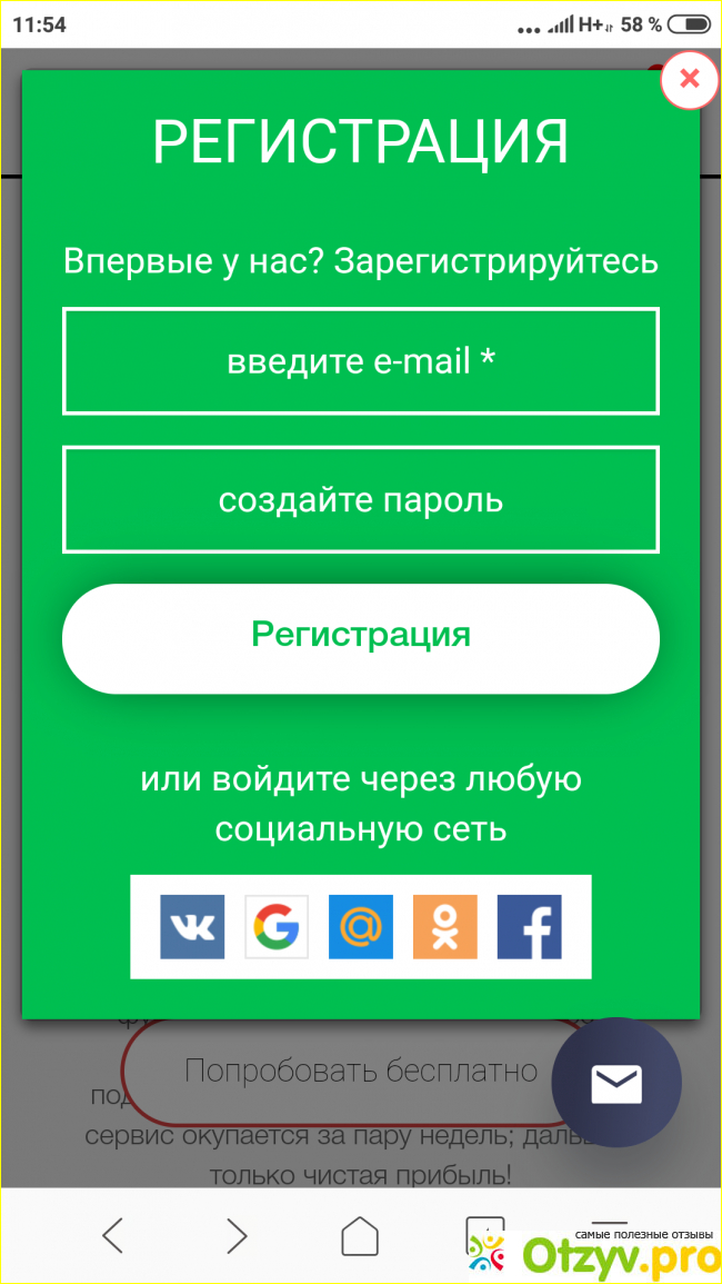 Чтобы зарегистрироваться в зенграм необходимо зайти в специальную форму и нажать кнопку регистрация. После этого действия на экране появится Зелёная окошко, в котором будет предложено ввести свой email и создать пароль. Также есть на сайте и альтернативный способ регистрации через любую из предложенных социальных сетей: ВКонтакте, Google, mail.ru, Одноклассники или Facebook.