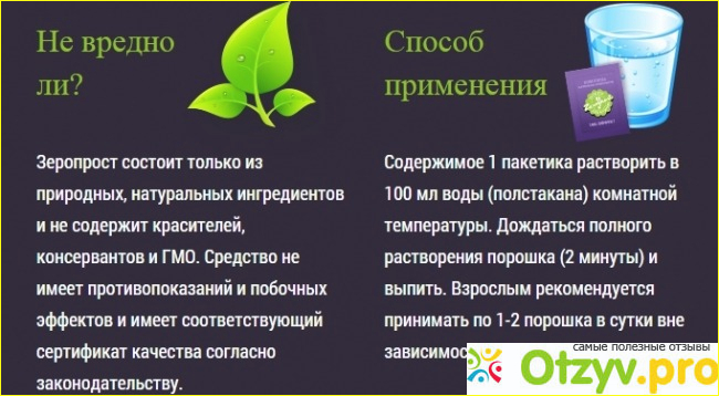 Благодаря уникальному составу, препарат действует быстро и качественно. В составе Зеропроста нет искусственных химических компонентов - только натуральные компоненты, которые гарантируют бережное воздействие на мужской организм и полное излечение от причины, вызвавшей такое заболевание.