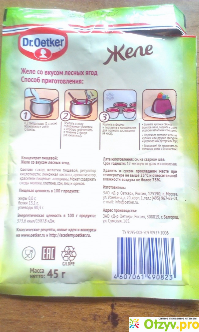 Может содержать следы молока, глютена, сои, яиц и орехов. Прямо скажем состав не самый хороший и полезный, но может быть нас поразить приготовленное желе своим потрясающим вкусом?