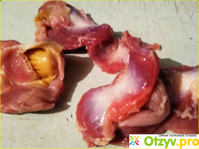Они продаются в замороженном виде. При оттаивании выяснилось, что льда не так уж много. Это важный фактор, а то иногда брала замороженный продукт на килограмм, а после оттаивания, условно говоря, получала 500 грамм. Сами по себе желудочки качественно очищены, цвет имеют правильный розовый. Сам по себе желудочек круглый, его предварительно разрезают и выворачивают. Извлекают внутренность в виде пищи, потребляемой птицей. Если проигнорировать очистку желудочков, то блюдо из него не будет съедобным. При приготовлении я отделила оранжевую плёнку, её кушать не желательно. Желудочки хорошо сочетаются с луком и картошкой. Получается рагу. При дегустации обнаружила приятное. Мясо цыплёнка жуётся легко, не резиновое. В интернете масса вариантов приготовления блюд из желудочков. Периодически обязательно буду брать желудочки от этого производителя. Так как желудочки других фирм мне не понравились. Ощущение резины во рту.