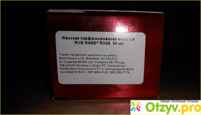 Выбрала аромат Sweet Rose спонтанно, захотелось чего-то нежного и сладкого, и чтобы основным мотивом была именно роза. Производитель парфюма польский бренд, La rive. Наслышана, что продукция имеет неплохое качество.