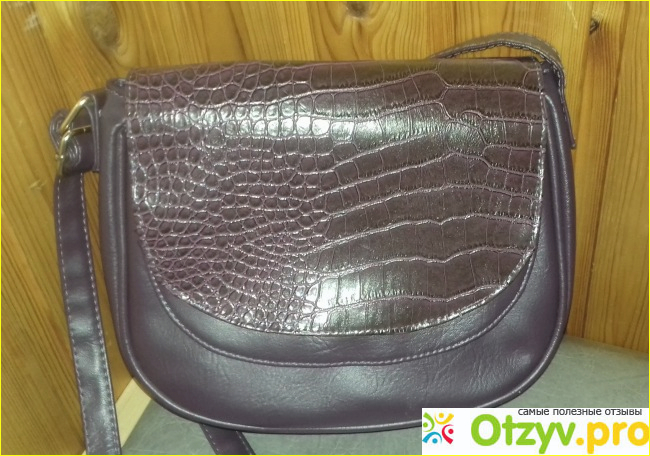 Данная сумка имеет баклажанный оттенок, хороший оттенок, не маркий. Основная часть сумочки сделана из кож. зама, а небольшая часть выполнена под крокодилью кожу и имеет глянцевую поверхность.