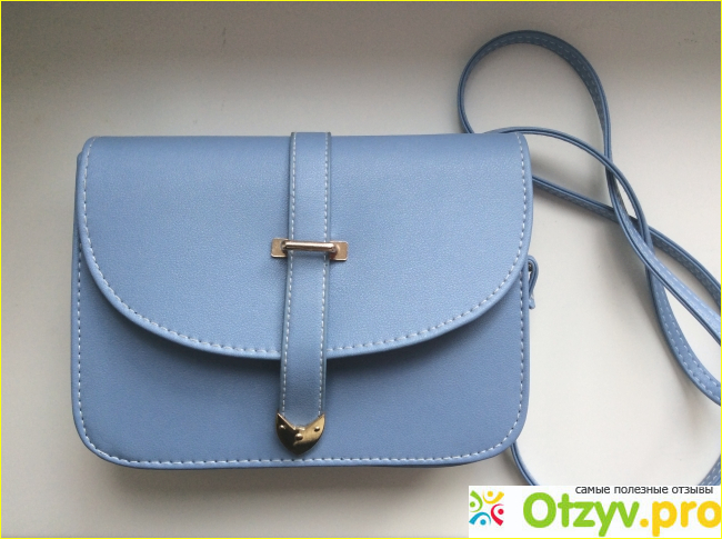 Цвет сумки нежно голубой, очень интересно смотрится, дополняет многие образы. Она застёгивается большим клапаном на качественную и крепкую магнитную кнопку, которая хорошо закрывает сумку. Внутри нет больше никаких отделений, карманов, прочих дополнительных ставок.